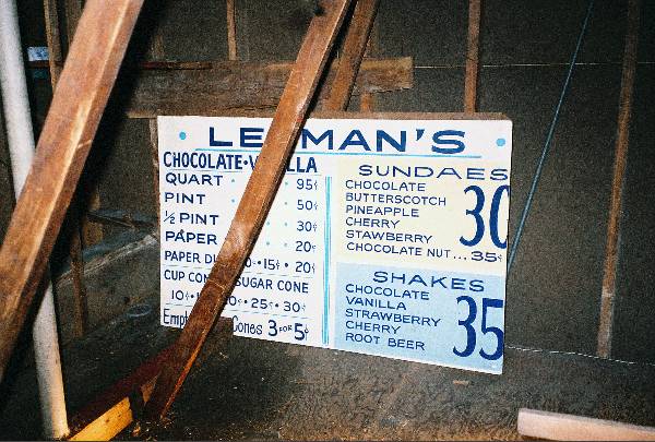 This sign is also in the attic over the garage. Note the prices.