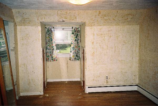 This is what walls that have been stripped look like. The previous owners' son started to remove the wallpaper in this room before we saw the house. I credit this room with saving us about $50,000. I'm sure the seller thought he could remove the wallpaper and paint the house and make a tidy sum in the process. However, seeing as this is the only room he started, I believe it quickly sapped his enthusiasm and he decided to sell it to the first rube that came along. Enter Clancy and GF.